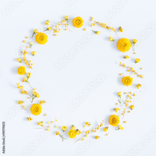 Maybe you would like to learn more about one of these? yellow flower wreath. Blue and yellow flower wreath.